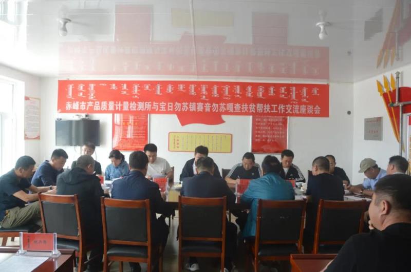 2020年是全面建成小康社会目标实现之年,是全面打赢脱贫攻坚战收官之年。为发挥帮扶单位优势,助力脱贫攻坚,5月14日,赤峰市产品质量计量检测所在宝日勿苏镇赛音勿苏嘎查召开扶贫帮扶工作交流座谈会。赤峰市产品质量计量检测所所长朝格图、副所长刘学军、旗人大常委会主任哈斯陶格陶出席座谈会并交流意见。旗人大办公室主任宝力高、镇党委书记孟和巴特尔,镇党委副书记、镇长张志春及市产品质量计量检测所一行12人、嘎查“两委”成员、驻村工作队参加座谈会。会议由镇党委书记孟和巴特尔主持。