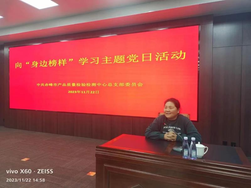 为深入推进学习贯彻习近平新时代中国特色社会主义思想主题教育走深走实,积极引导党员干部职工以学铸魂、以学增智、以学正风、以学促干,切实发挥先进典型示范引领作用,促进将学习热情进一步转化为推进工作落实的强大动力,11月22日,赤峰市产品质量检验检测中心党总支开展“学习身边榜样”主题党日活动,特邀请全国人大代表、松山区大庙镇小庙子村党总支书记赵会杰为中心全体党员干部职工讲授了一堂生动的党课。