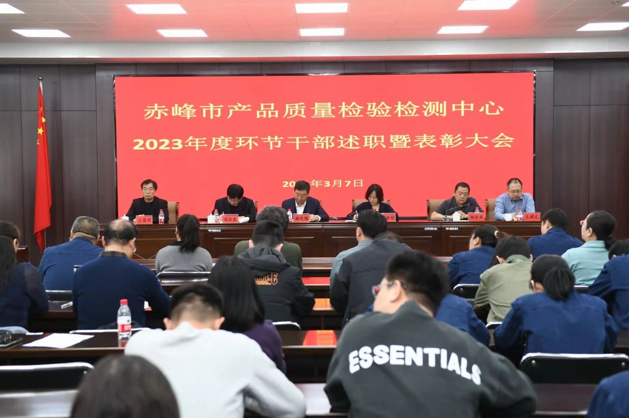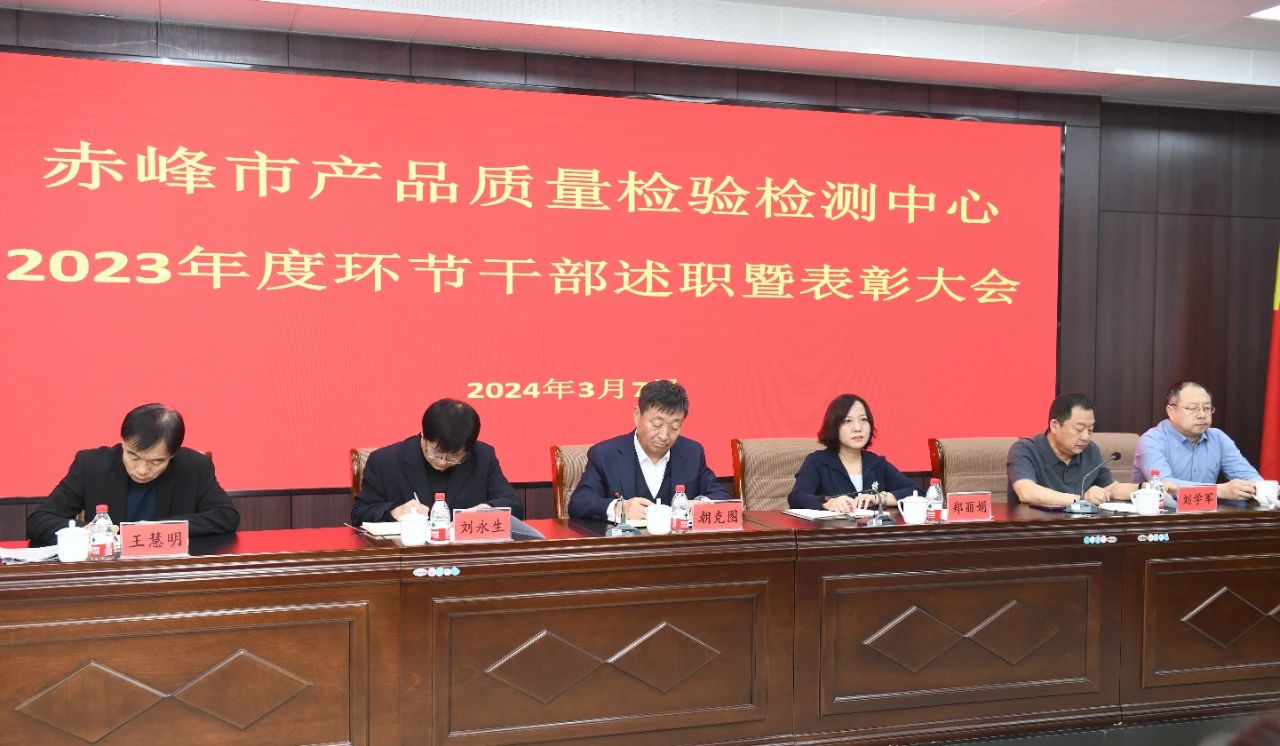 3月7日,赤峰市产品质量检验检测中心召开2023年度环节干部述职暨表彰大会。大会全面总结了2023年度工作并就2024年度工作进行了安排部署。中心领导班子成员、各科室(中心)干部职工180余人参加大会。中心主任助理刘学军主持会议。