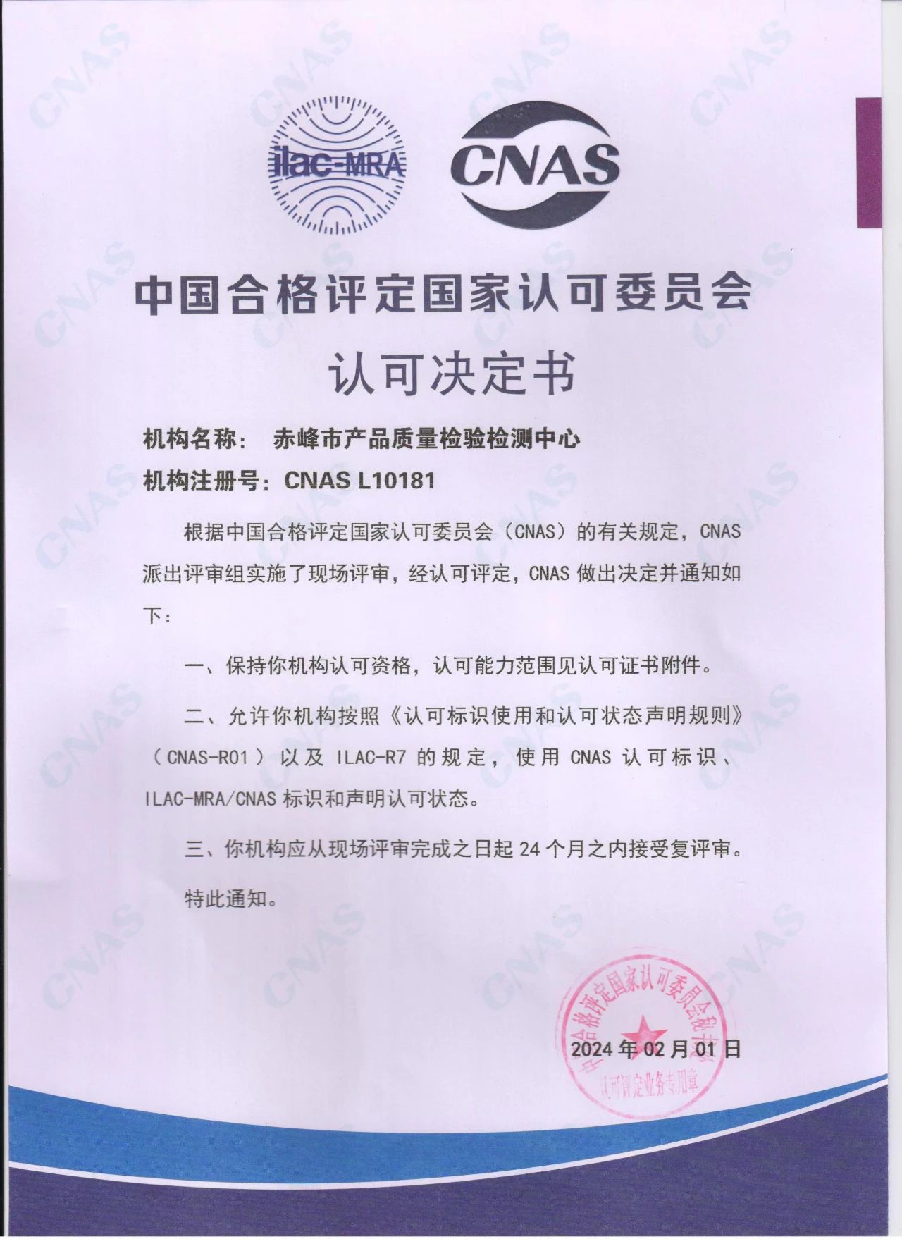 赤峰市产品质量检验检测中心顺利通过国家CNAS认可复评审