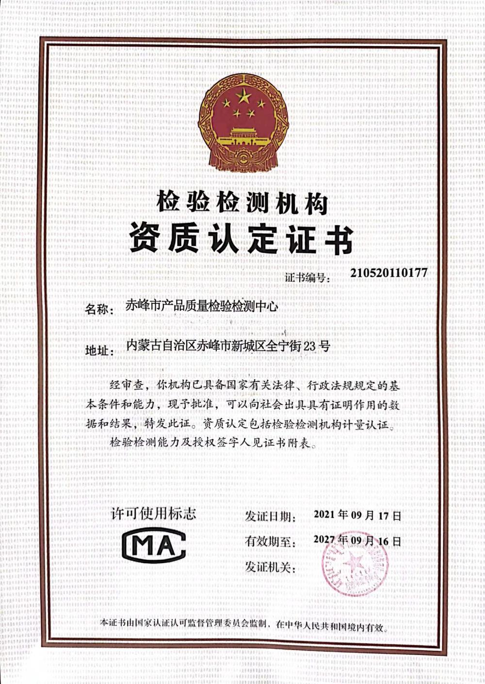 赤峰市产品质量检验检测中心关于启用电子证书(报告)的公告